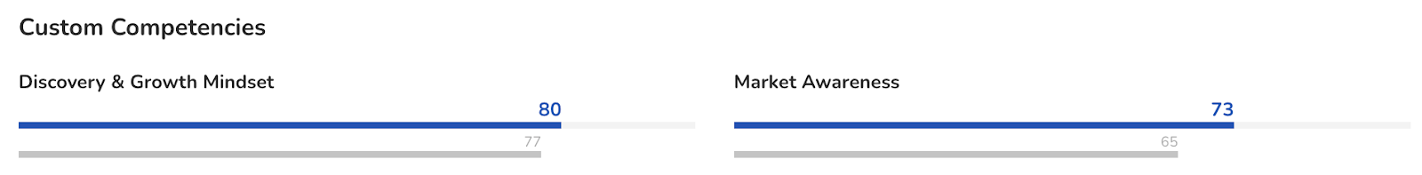Custom Competencies – These are specific behaviors your team has identified as essential to success (e.g., accountability, collaboration). Candidates are scored based on how well their profile aligns with these expectations.