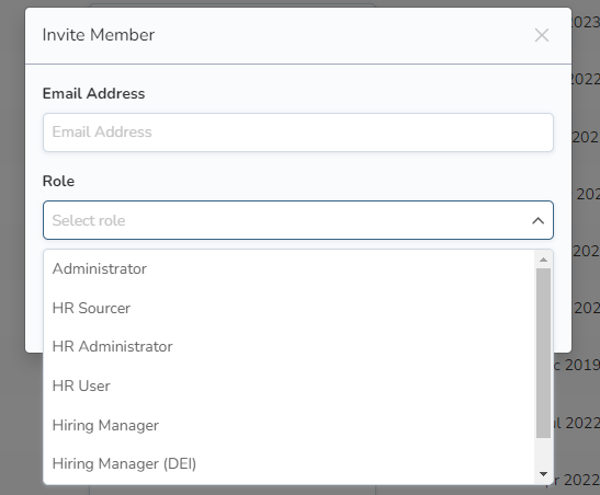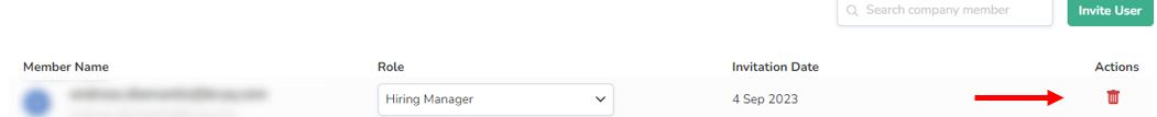If you wish to add a user in order to allow access to the Bryq assessment, you simply click on the Invite button on the right side, under Company Members section. You type the email address of the member you wish to add and you select his/her desired level of access based on his/her role under the Role dropdown button.