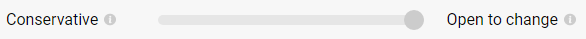 You can choose the middle when you would like the candidate to exhibit a balance between the two ends. Be careful when selecting the middle, as candidates with opposite traits will score the same. For example, a completely conservative candidate and a completely open to change candidate will both score the same (zero) for Open to change.