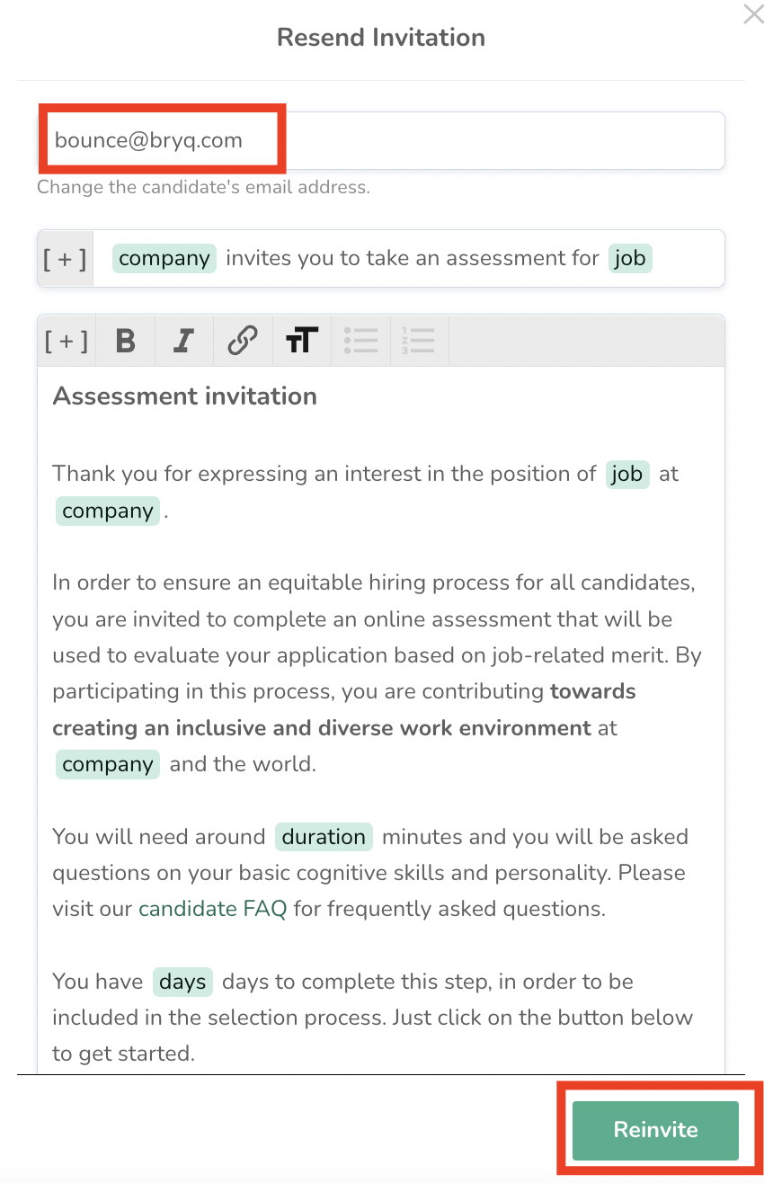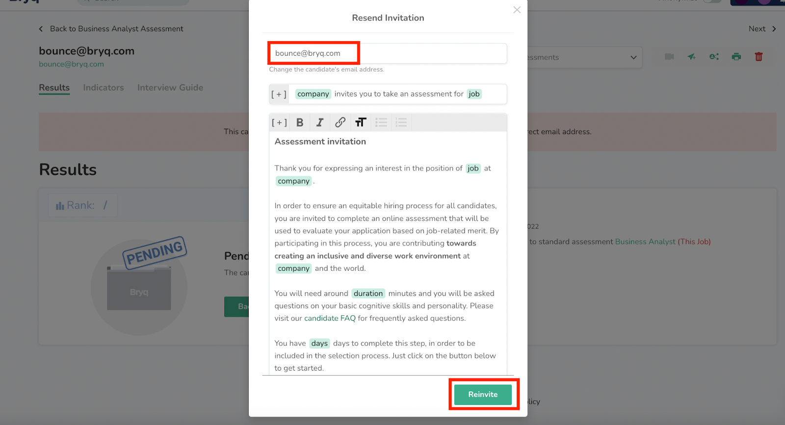 How to resend invitations to the correct candidate email when they are not delivered (bounced) | Bryq Help Center