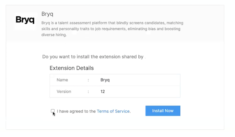 5. Go to your Zoho Recruit account and head to the Marketplace. Here, search for Bryq and click Install Now.