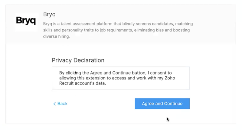 Zoho Recruit is a cloud-based ATS that can be used in every step of the recruitment and hiring processes. With Zoho Recruit, you can source talent, run background checks, manage your candidate hiring pipeline, and more. By integrating with Bryq, customers will be able to add the Bryq assessment to their Zoho Recruit pipeline, and easily decide which candidates move forward in the process.