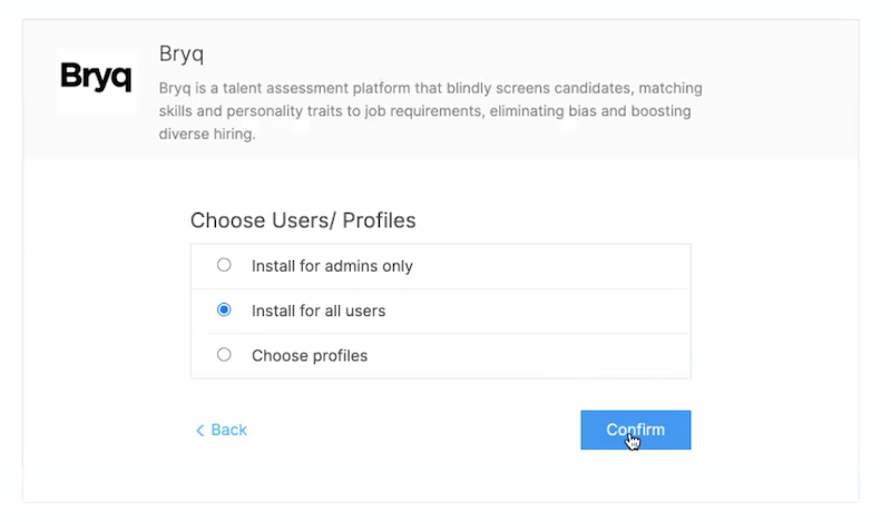 6. Next, choose who you would like to have access to Bryq. We suggest "Install for All Users".