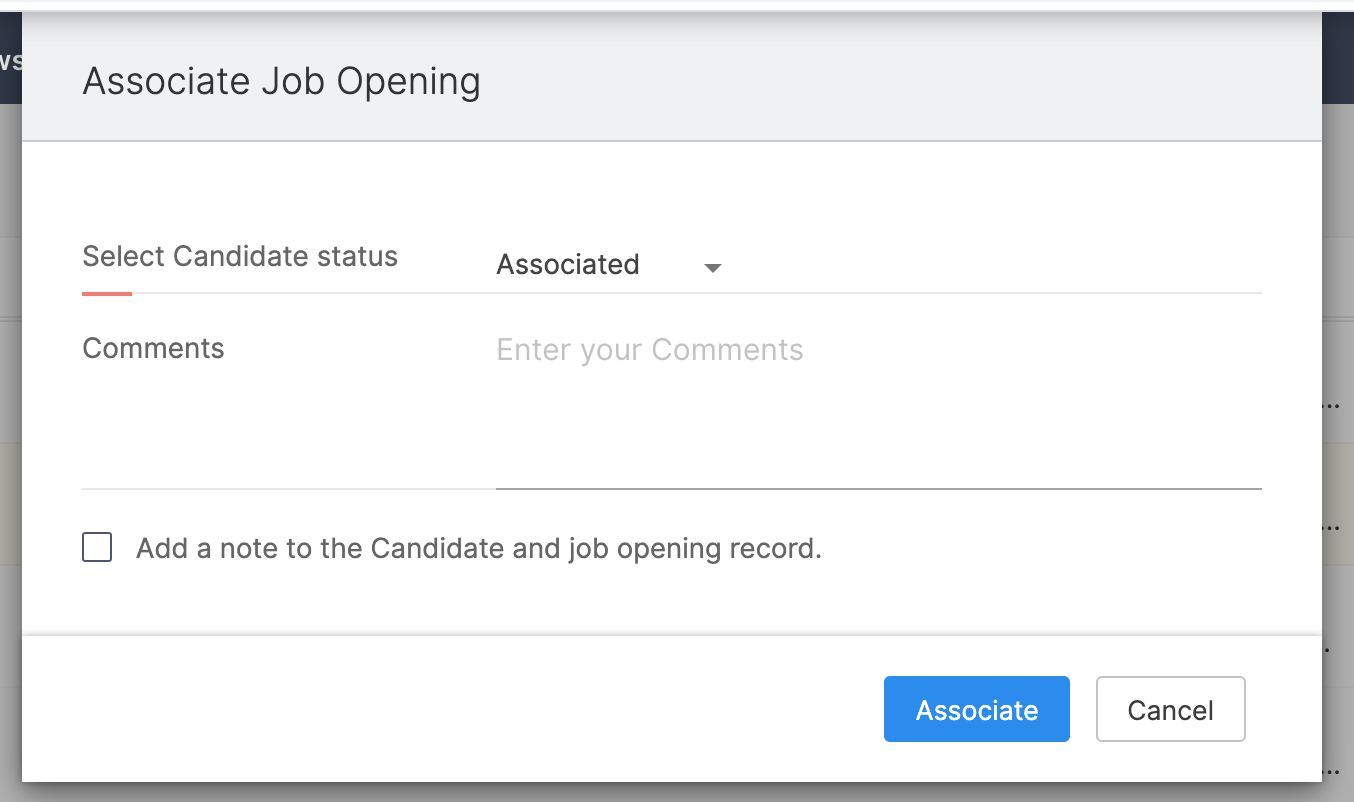 2. Next, go to your Zoho account and click on your Job Openings. Select the job you just made the assessment for, and click Associate Now. Select the option Associated from the Candidate Status drop-down and click Associate.