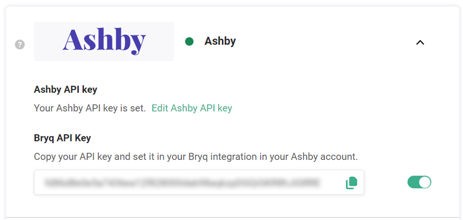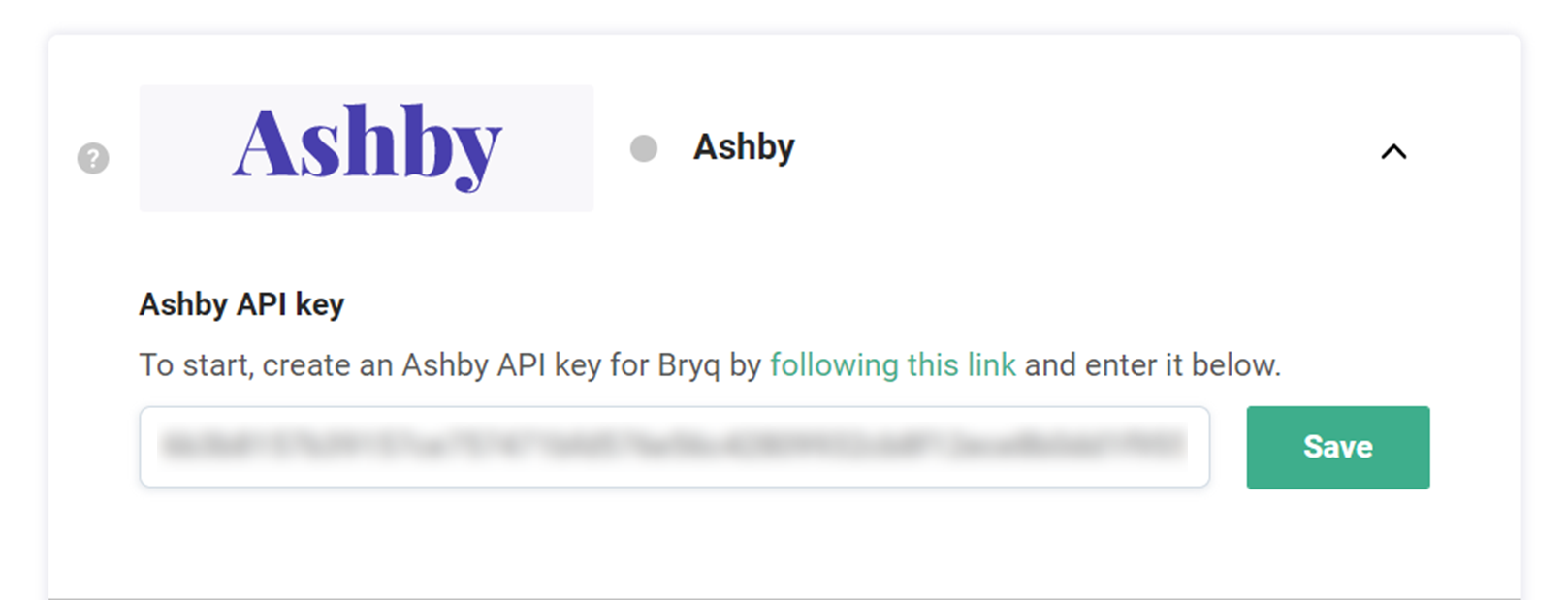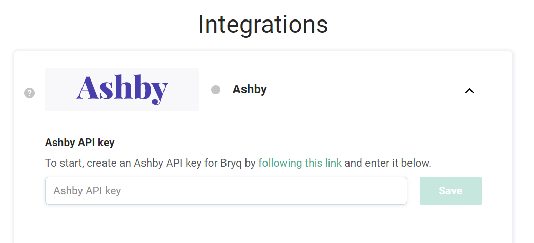 6. Go back to the Integration page in the Bryq app and paste it in the Ashby API Key field. Finally, click on Save.