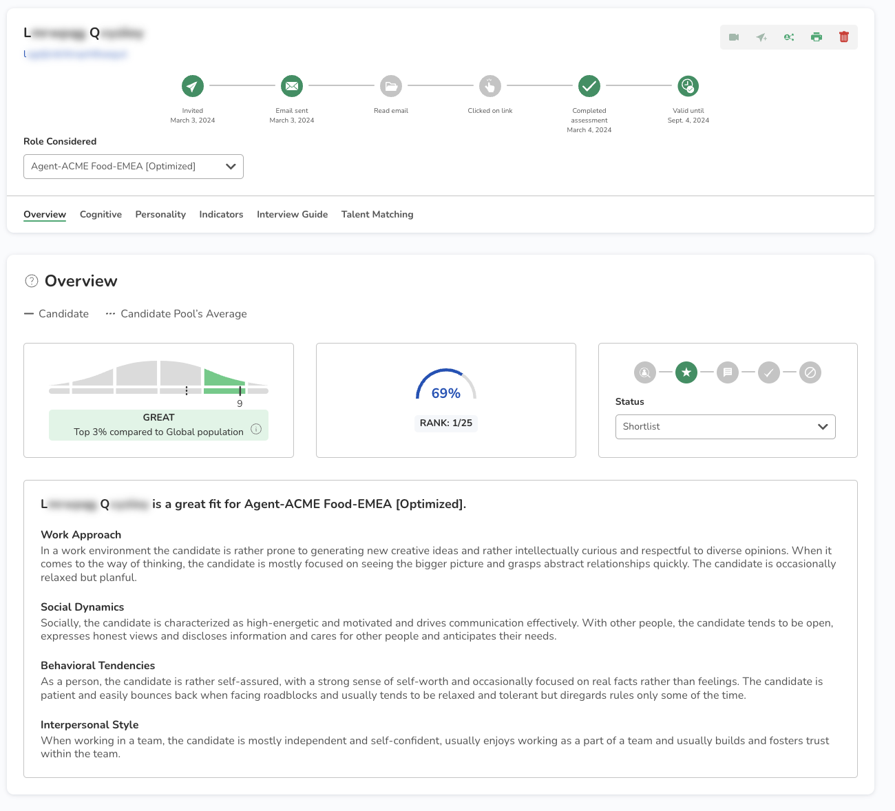 Here you can see the detailed candidate results and how well the candidate matches the specific position.