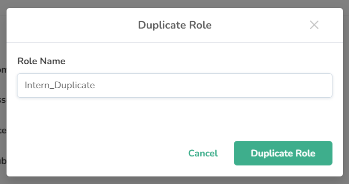 2. A pop-up window will appear with the name of the previous role and the tag Duplicate next to it.