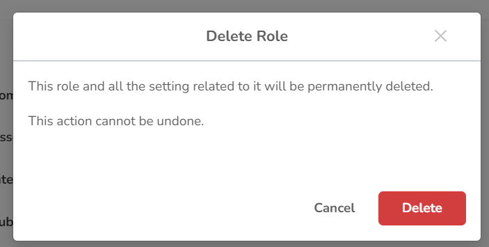๐If team members are still assigned to the role you are about to delete, the Delete icon will appear disabled. You should first re-assign a new role to your company members before deleting the role.