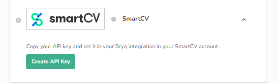 Scroll down until you find the SmartCV logo and click on Create API key button.