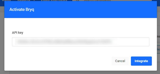 6. Click on Activate. A pop up Activate Bryq will appear; paste the API key from Bryq and click on Integrate.