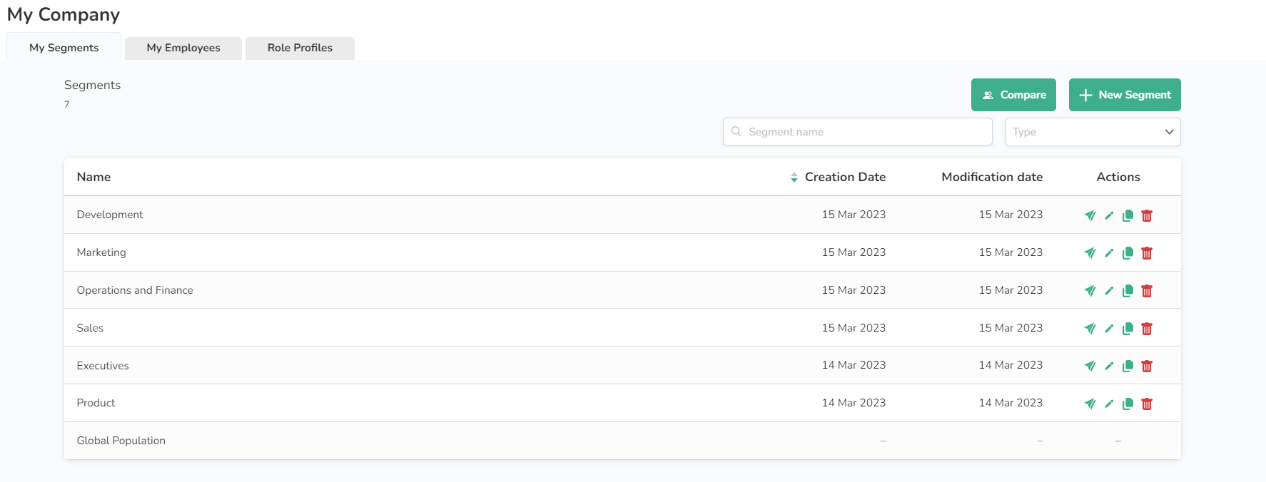 Then click on the Send invitation icon either directly from the Actions in the table or after selecting a segment from the actions toolbar on the top right-hand side.