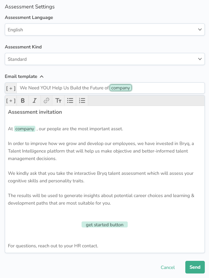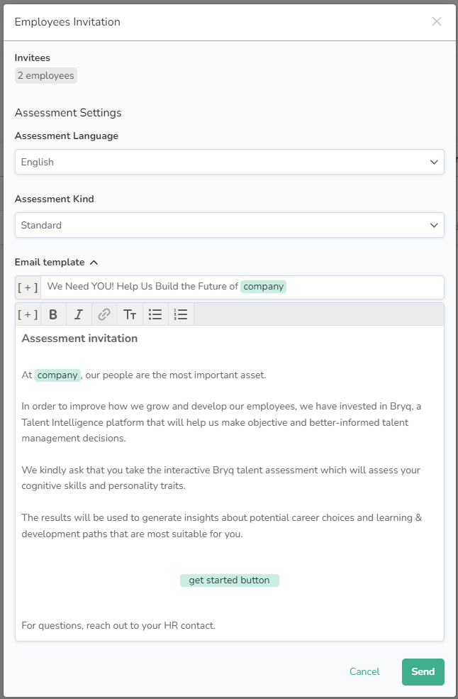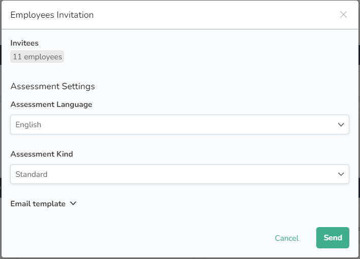 Then, click Send. At this point, your Employees received the assessment invitation in their email inboxes.