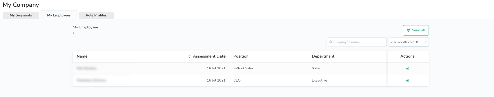 In case you want to send a reminder to specific employees who have not yet completed the assessment you can do so via the My Employees view under the My Company menu.